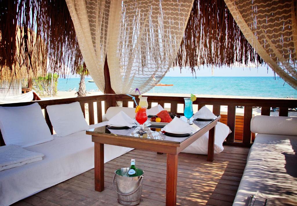 Guests can enjoy Asian cuisine at the Garuda Restaurant and a fusion of Turkish, Mediterranean and Mexican food at the main Mythos Restaurant. Both eateries focus on healthy, low-calorie dining.