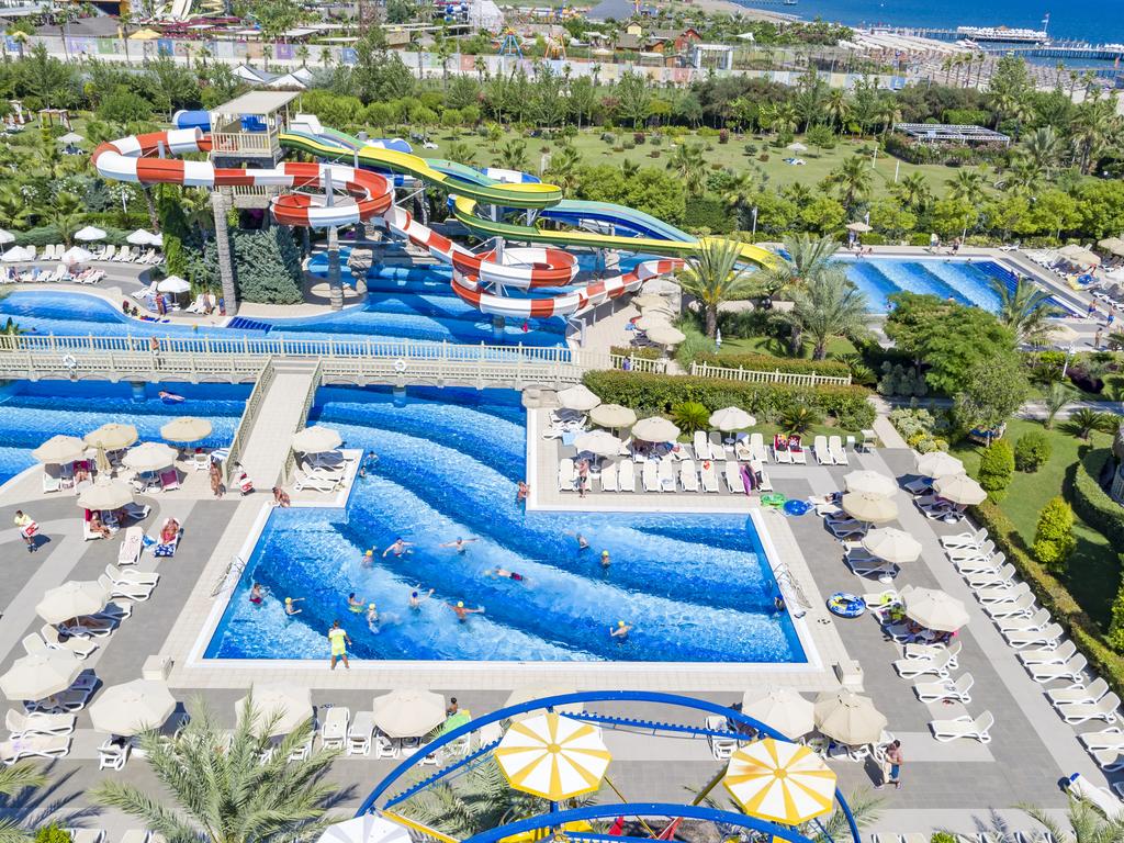 Sports and recreation: Outdoor and indoor pool for adults and children, Aqua Park with 8 water slides, fitness center, Turkish bath, sauna, Jacuzzi, steam bath, tennis court, beach volleyball, basketball, ping-pong. Free of charge: water sports, tennis court, bowling, billiards, SPA center and beauty salon, massages.
