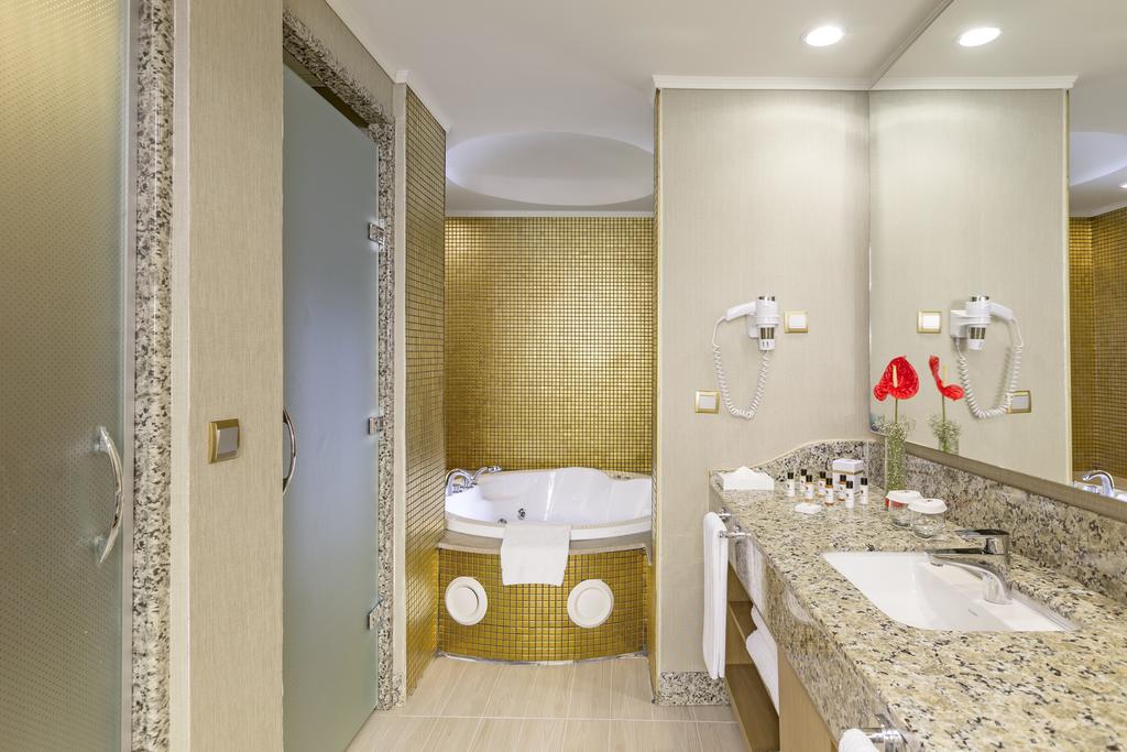 Location: The hotel possesses a total of 604 rooms. Superior standard room (46m², one bedroom, one bathroom, max.3 + 1pax), Luxury room (85m², two bedrooms and one bedroom, two bathrooms, one with shower / WC, max.4pax), Duplex family room (75m², two bunk beds + bathroom with shower, upstairs is a French bed with bathroom with bathtub, no doors, like gallery, max.4pax), suites room (60m², one bedroom and one bedroom, max. 2 + 1pax), Family room with connecting door (60m², two bedrooms with a door in the middle, a bathroom, max.4pax), Triplex suit (114m², three storeys and one room on each floor, downstairs one room bedroom and shower, and living room on the basement floor, max.4pax), the King sits (180m ², on the first floor the parents bedroom and the bathroom with Jacuzzi, the lower downstairs bedroom, the bathroom with shower, living room and small kitchen, max 4pax) and 6 rooms for guests with disabilities. All rooms have private bathroom with bathtub, shower and hairdryer, central air-conditioning system that works under atmospheric conditions, direct phone, sitting set, mini bar (water, refreshment and refilled beer every day), boiler, raised , safe box, satellite TV and music channels, WI-FI internet connection, balcony and all rooms are non-smokers.